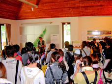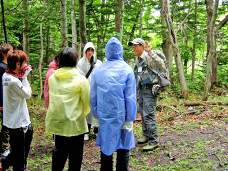 において、総合科目Tのフィールドワークを行ないました。知床自然センタースタッフの方々による講義を受け、時雨の合間をぬって、森の復元を目指す取り組み「100平方メートル運動の森・トラスト」の現地見学を行ないました。学生達は真摯な態度で講義に耳を傾け、普段見られない大自然のスケール、時折顔を見せる野生のエゾシカに歓声を上げていました。