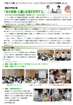 本学では、独立行政法人科学技術振興機構の支援事業である平成23年度の「サイエンス・パートナーシップ・プロジェクト(SPP)」として採択された講座型学習活動「命の制御・心臓と血液を科学する」を、本講座の連携機関である北見北斗高等学校、北見柏陽高等学校、北見緑陵高等学校から多くの学生の参加を得て開催いたしました。 開催内容の詳細は、下記のとおりです。