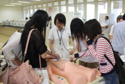 参加者の皆さんは、講堂での教育概要、キャンパスライフ、入試概要の説明を聞いた後、模擬授業、看護の実体験コーナー、進学相談、在学生対談等の各コーナー・施設等を自由にまわり、大学生活、看護への興味を深めていたようです。