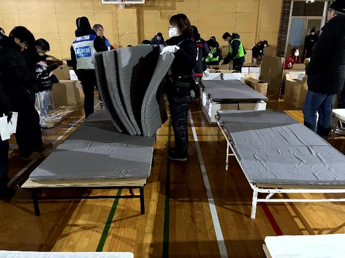 令和8年1月17日~18日「厳冬期災害演習2026」より避難所開設時スチールベッド化検証にベッドフレーム及びマットレスを使用し、蓄電池駆動式レンジ展開時にポータブル電源を使用しました。